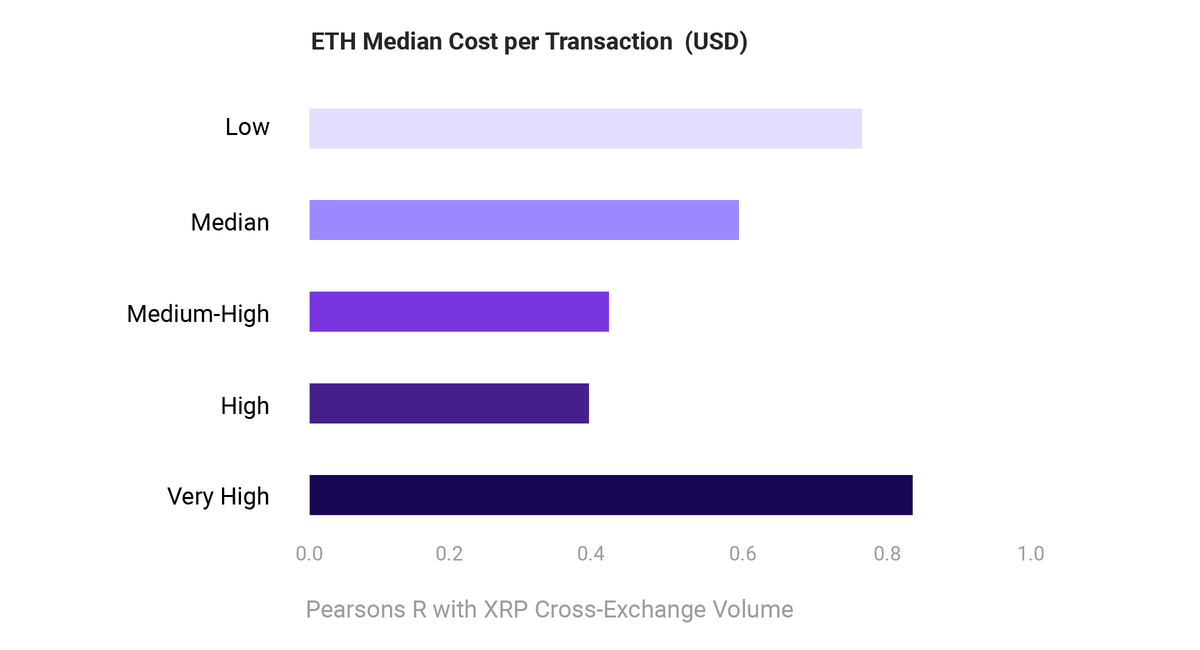 Figure 2. Pearson’s R of >0.6 is an indicator of positive correlation. ETH cost is detrended here to remove trends, and a time-lagged analysis was performed. Cost levels are based on percentiles. (Note: ETH cost is a long-tail distribution and percentiles are adjusted to reflect levels accordingly. Low: <50% percentile, other buckets are evenly distributed.)