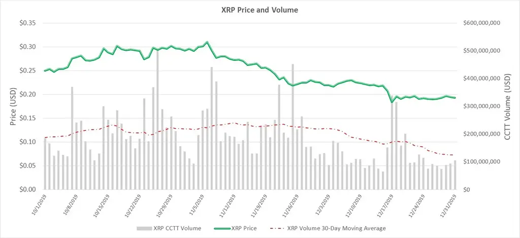 CCTT's reported daily volume for XRP decreased in Q4 from Q3 2019. The average daily volume was reported at $187.34 million in